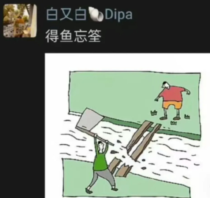 她发朋友圈骂“得鱼忘筌”,配过河拆桥的图。