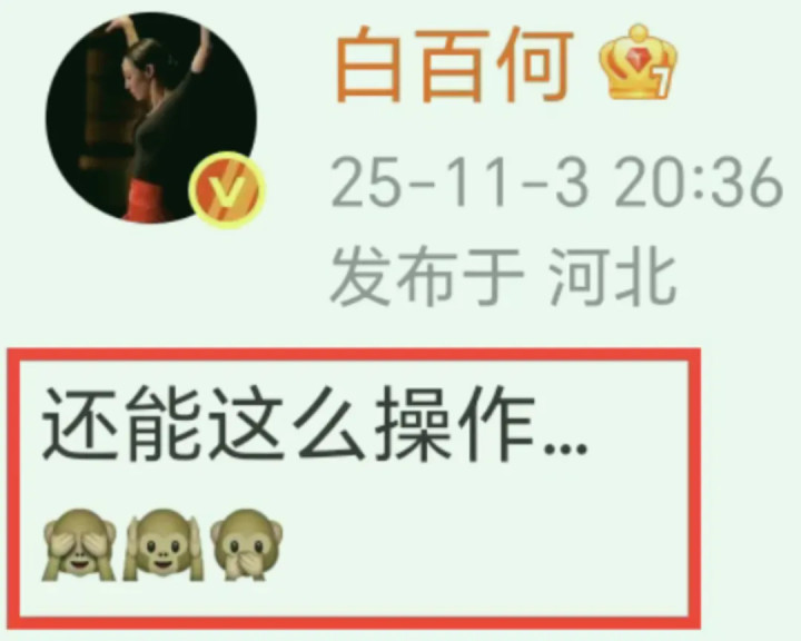 11月3日那天,白百何发了条微博:“还能这么操作?”
