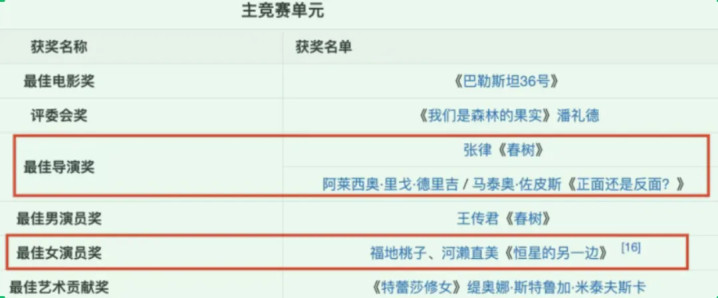 最终影后颁给了日本双黄蛋,她颗粒无收。