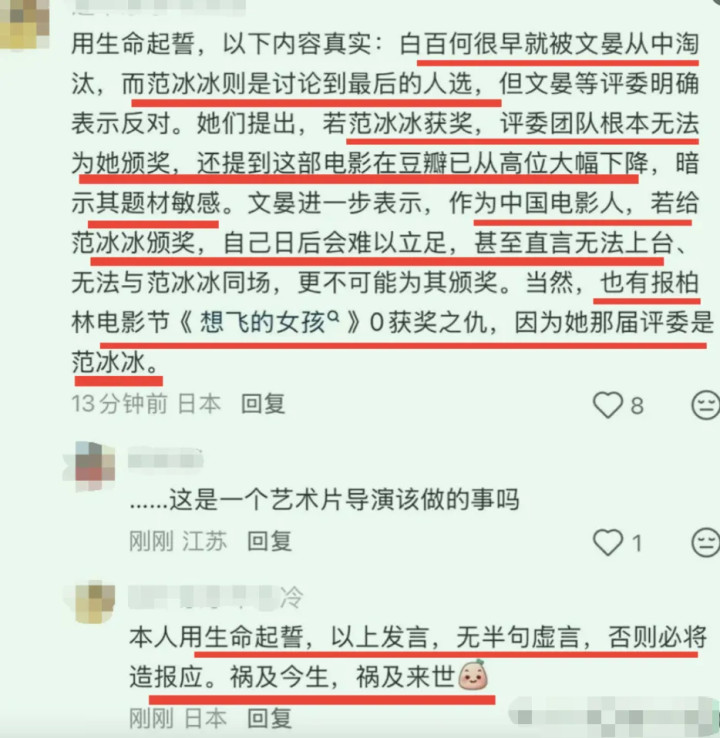 很快有日本 IP 的瓜主爆料,说范冰冰本来闯进了决赛,是文晏坚决反对才被刷下来 ——
