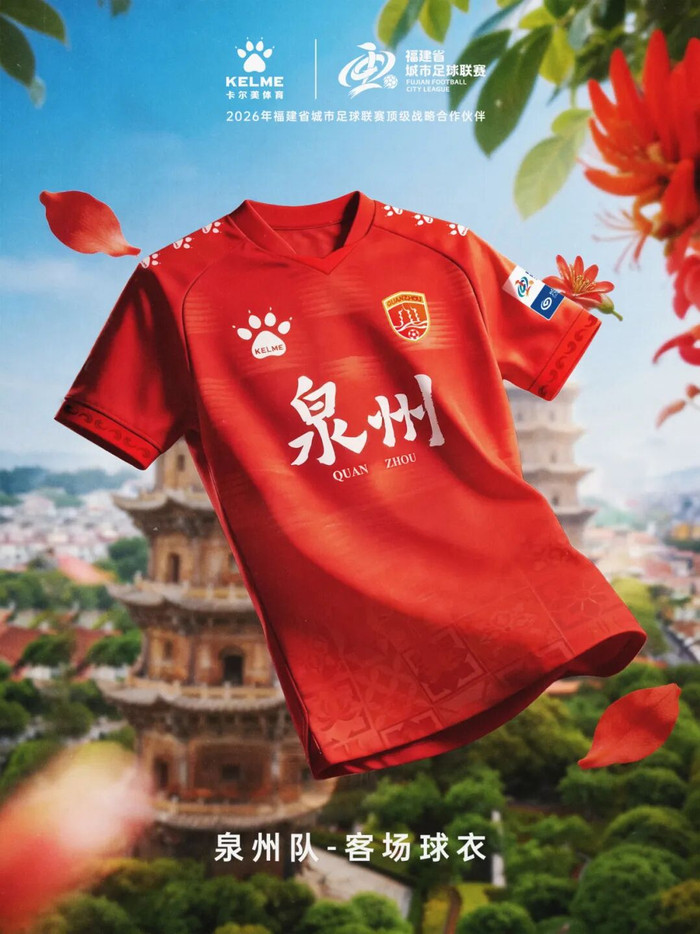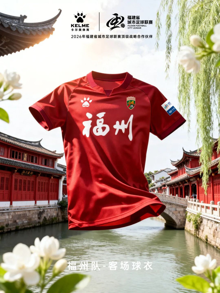 客场球衣以朱红为主调,点缀茉莉花瓣,刚柔并济间尽显福州“温润而热烈”的城市性格。