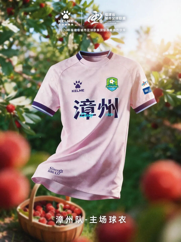 主场球衣以漳州浮宫“杨梅粉”为底色,融入南靖土楼建筑美学,袖间的水仙花与诏安青梅梅花,将凌波仙子的冰清玉洁与傲骨凌霜的花枝暗香交织。