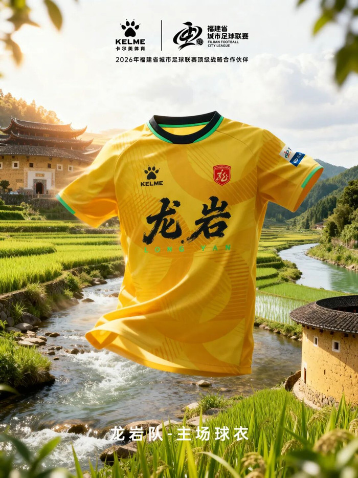 主场球衣以“土楼黄”为底色,圆形围楼结构层层叠叠,窗棂与夯土肌理织就疏密暗纹。