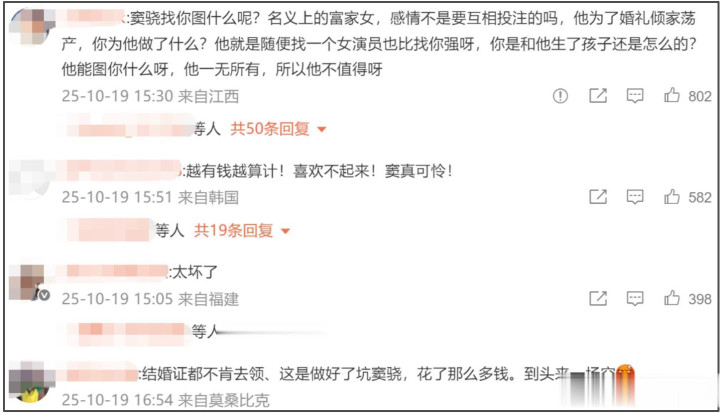 也有网友冲去了何超莲评论区,吐槽她家太抠门,婚礼和装潢都让男方出,实在是太有防备心。