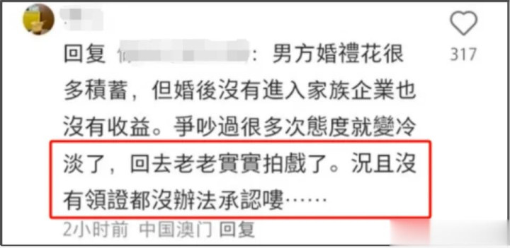 还有一直有一个说法是,两人根本没有进行结婚登记,所以就有网友替窦骁鸣不平,觉得女方太会计算了。其实两人婚变已经被曝两年了,比较集中的说法就是这个没领证,双方也没回应否认过。