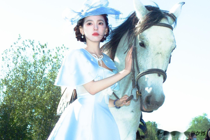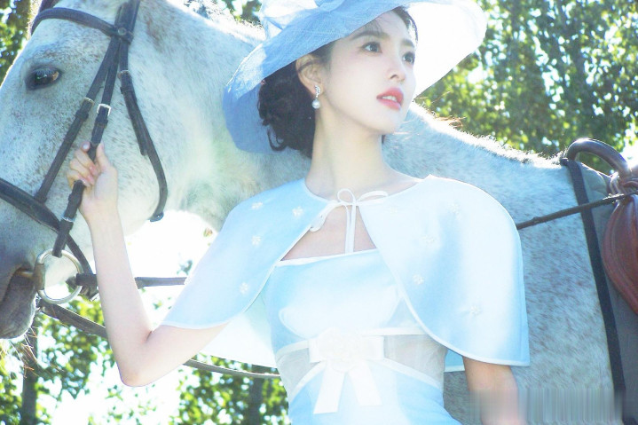 章若楠民国千金造型: 蓝裙礼帽美疯全场