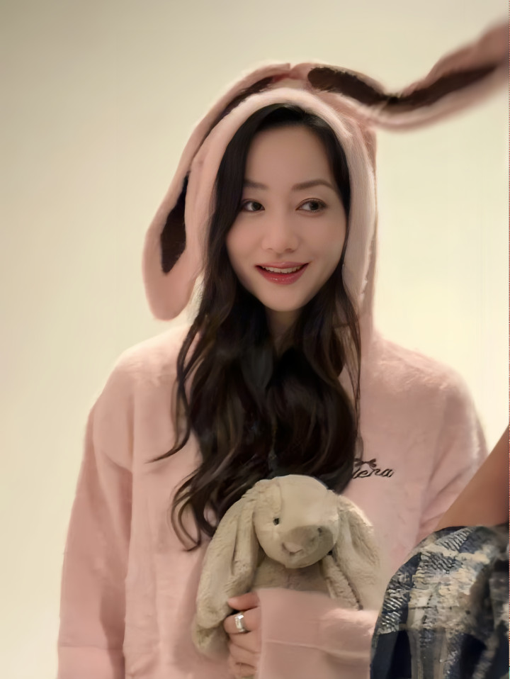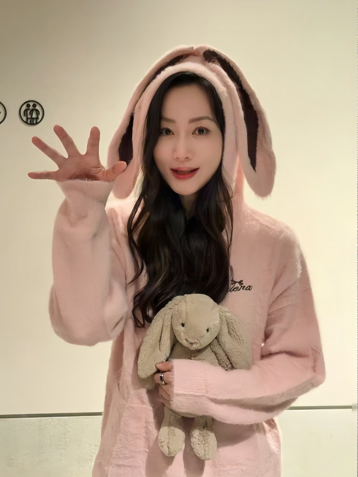 这身粉色兔耳毛绒睡衣更是把韩雪的孩子气拉满了,怀里还抱着一只垂耳兔玩偶。长长的兔耳罩住半张脸,笑起来眼睛弯成月牙,完全是卸下所有包袱的软萌模样。