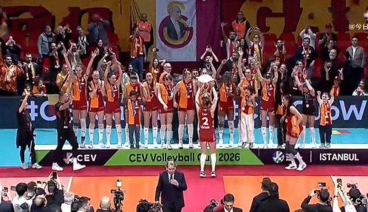 北京时间4月9日凌晨,2025-2026赛季女排欧联杯决赛次回合落幕,土耳其加拉塔萨雷坐镇主场3-1战胜意大利劲旅基耶里,四局的比分是25-27、25-22、25-18和25-18。这样,加拉塔萨雷在两回合的比赛中双杀对手,从而捧起冠军奖杯 。
