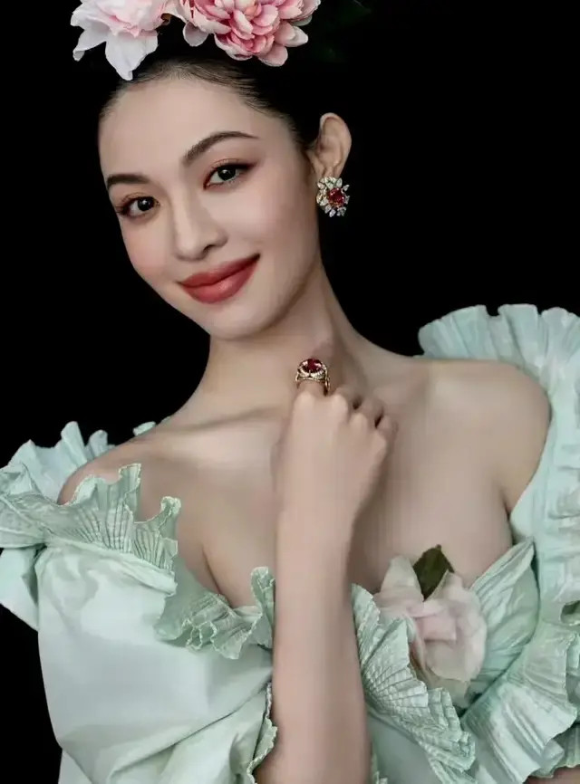 合影中,她位于周冬雨、张小斐、马思纯(三位影后)和刘亦菲、杨幂(85 顶流)之间,位置显要。