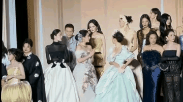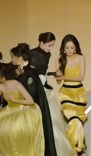 盛典大合影环节钟楚曦早早站到舞台中间看到刘冲带着刘亦菲前来与刘亦菲打招呼后,虽然以后往旁边李然但只是很小幅度,细心网友发现钟楚曦的左边还有很大位置,但是右边空间还是很拥挤的,等到杨幂进场后注意到没位置的娜扎暖心的拉过杨幂