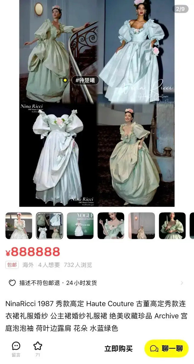 但是事后有人指出,钟楚曦的位置是工作人员指给她的钟楚曦的礼服太重,根本无法自如移动。现场视频显示,她虽然有抬手示意的动作,但因为礼服太重,身体根本无法横向移动。在这之后又传出钟楚曦身上那件1987年的Nina Ricci古董高定就被挂上闲置平台