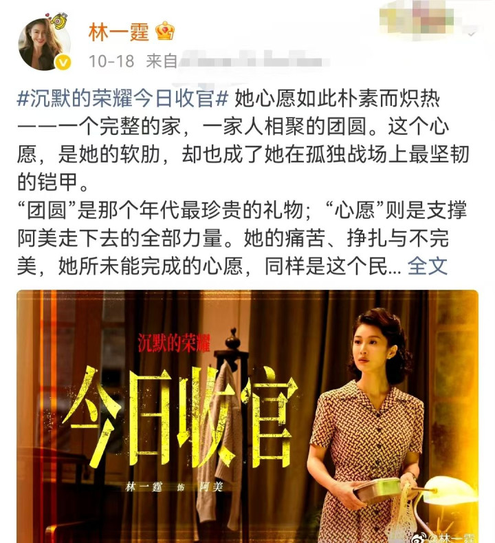 然后,最近因为《沉默的荣耀》的播出,她还发了好几条剧宣内容,